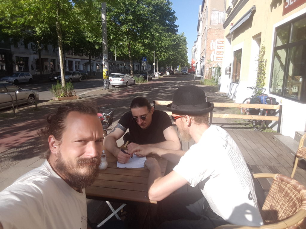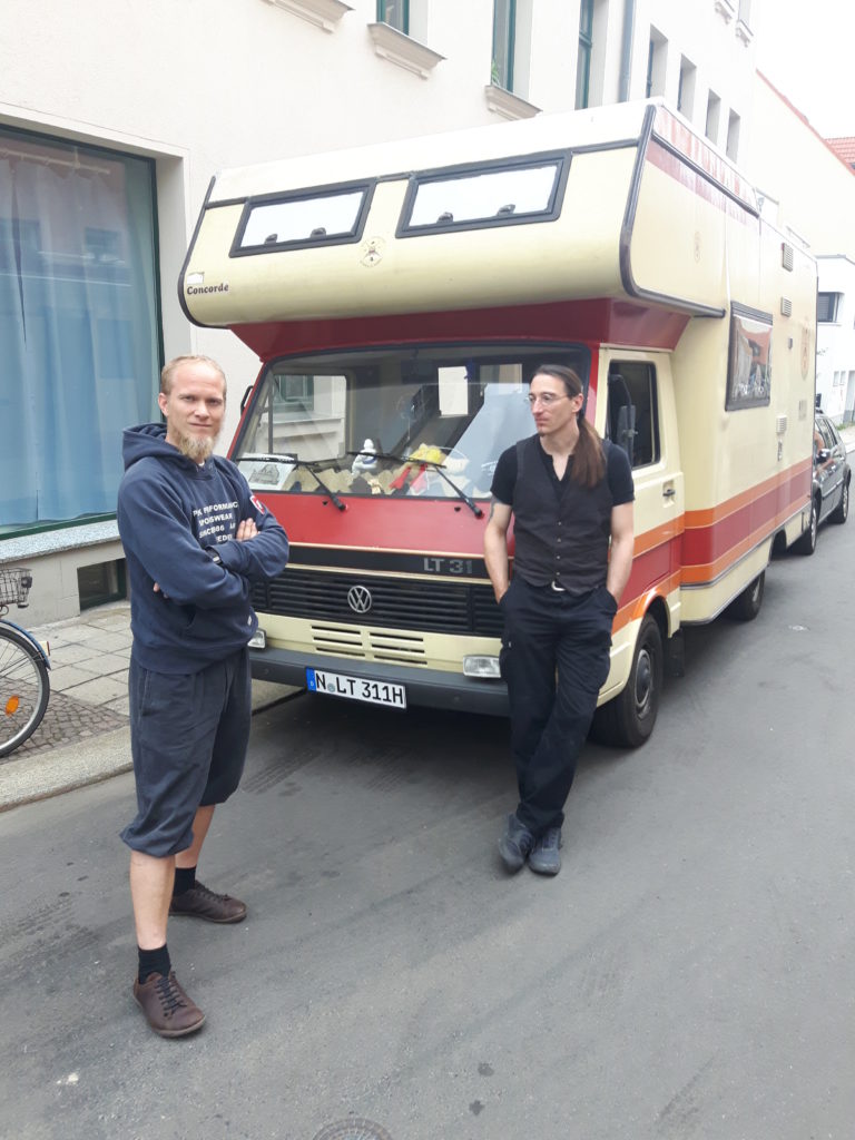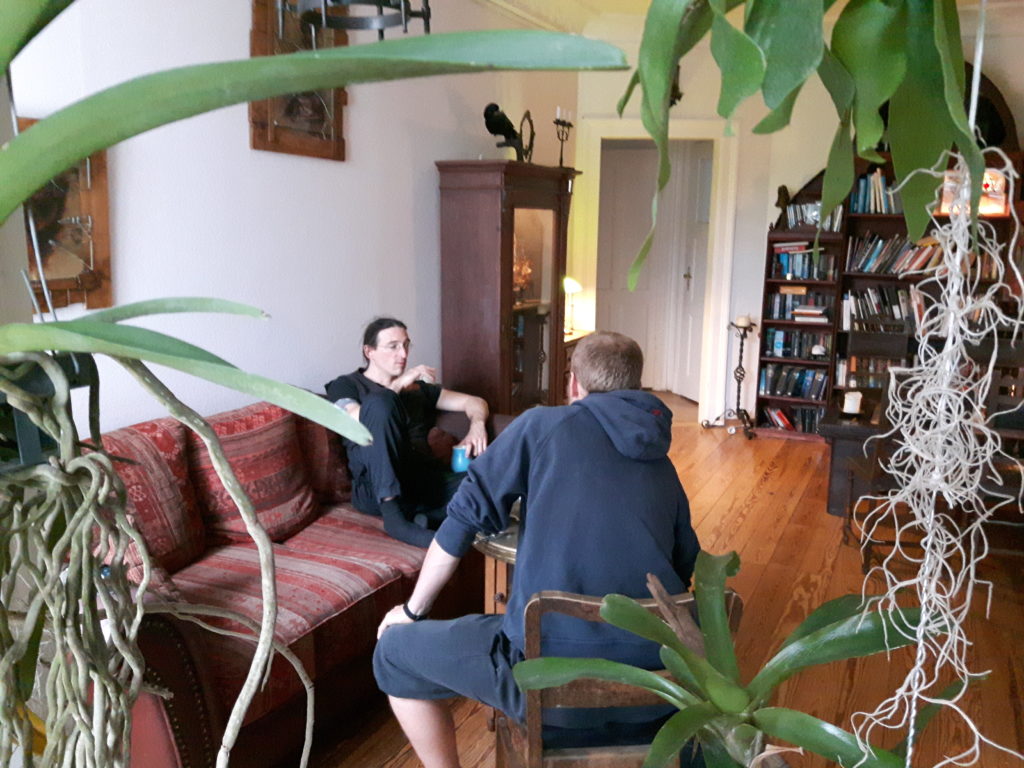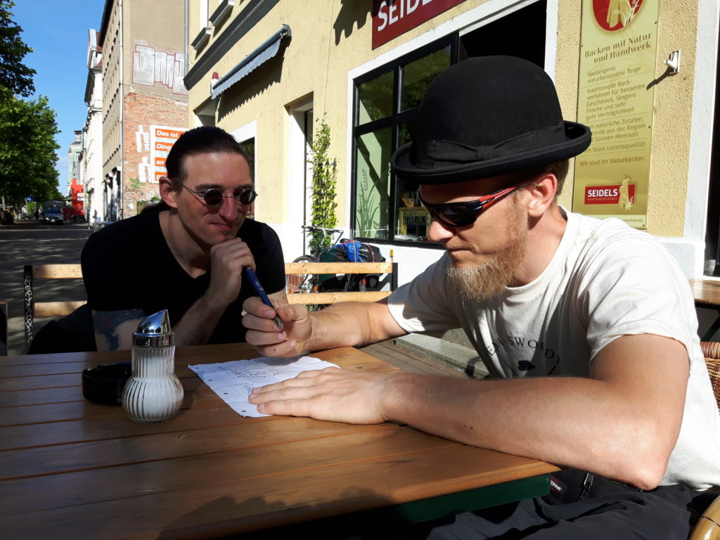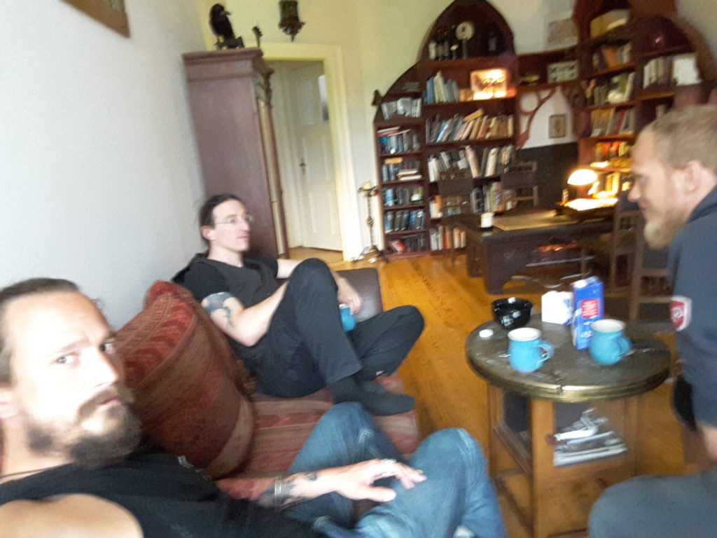 Die Stahlakademie von Torsten Schneyer war von Anfang an oben auf Linnels Wunschliste der Stops. Wenn ein HEMA-Urgestein mit 20 Jahren Erfahrung in dem Metier nach persönlicher Umorientierung in Leipzig noch mal einen Neustart wagt, ist das Ergebnis erwartungsgemäß beeindruckend. Torsten nahm uns gegen Nachmittag sehr freundlich in Empfang und versorgte uns mit feinem Kaffee. Dann wurde erstmal geplauscht – über HEMA, über Schwerter und Ausrüstung, über die Entwicklung die die Szene macht und vieles mehr.