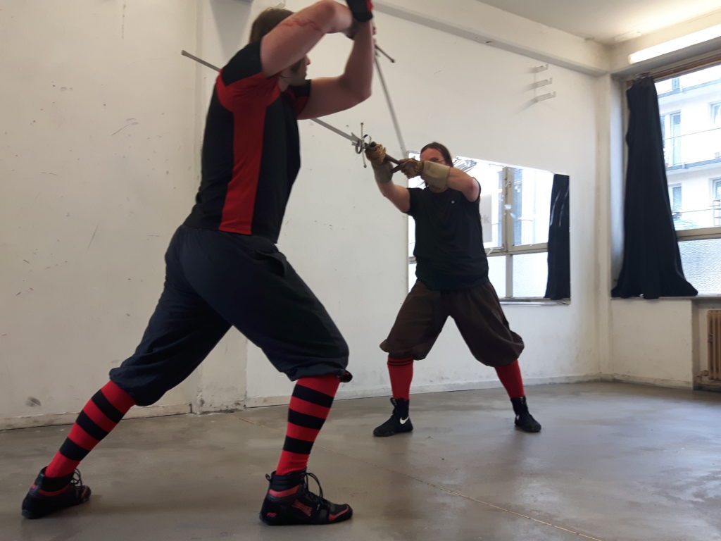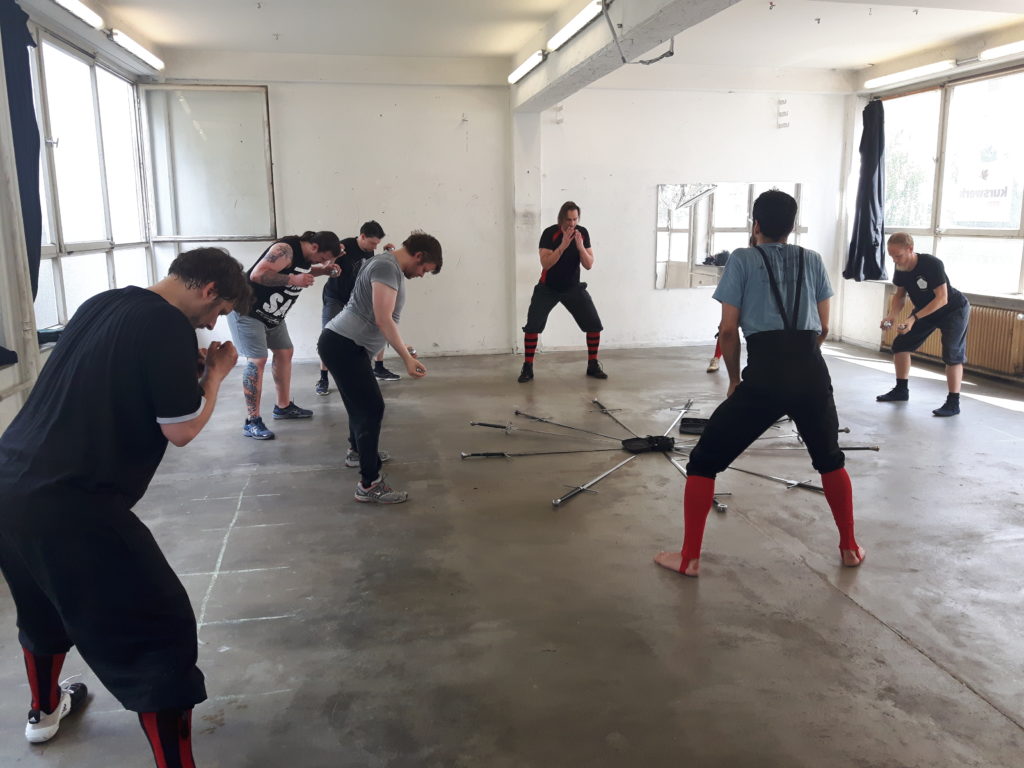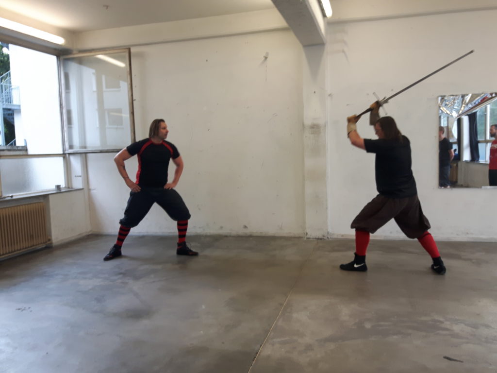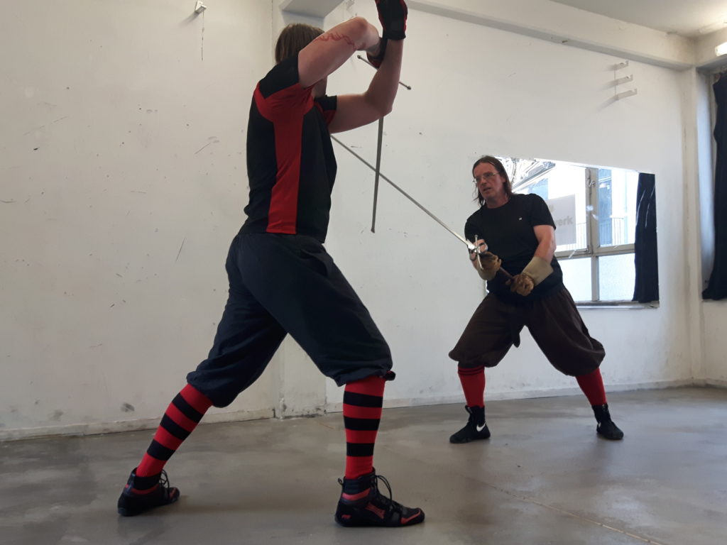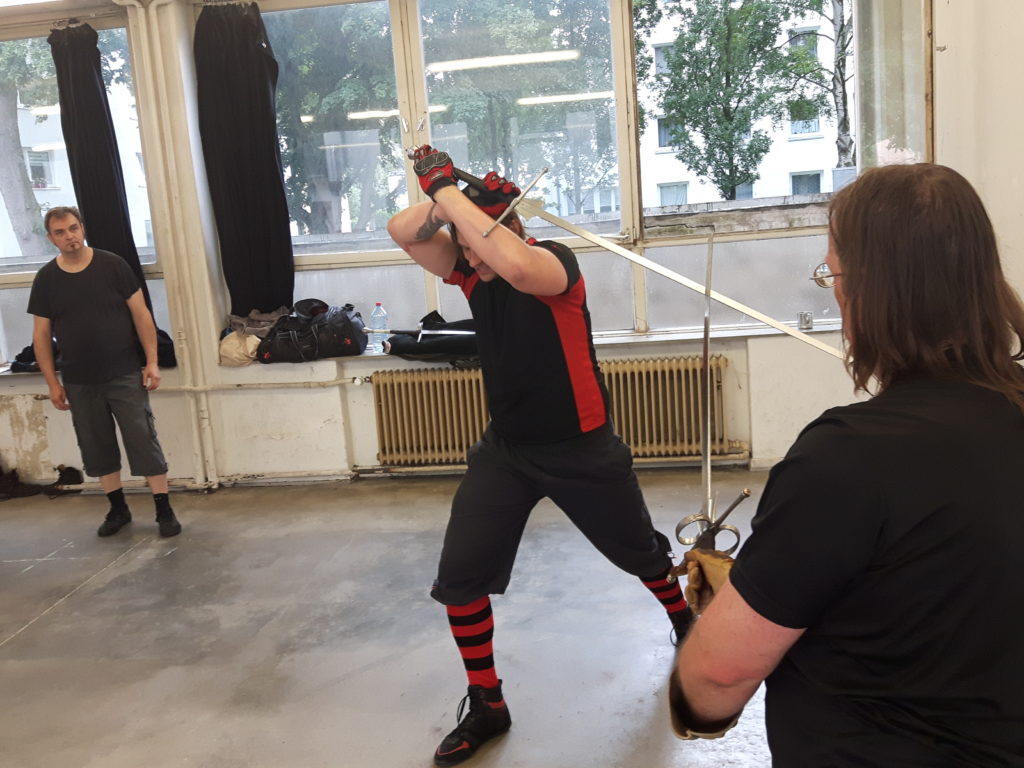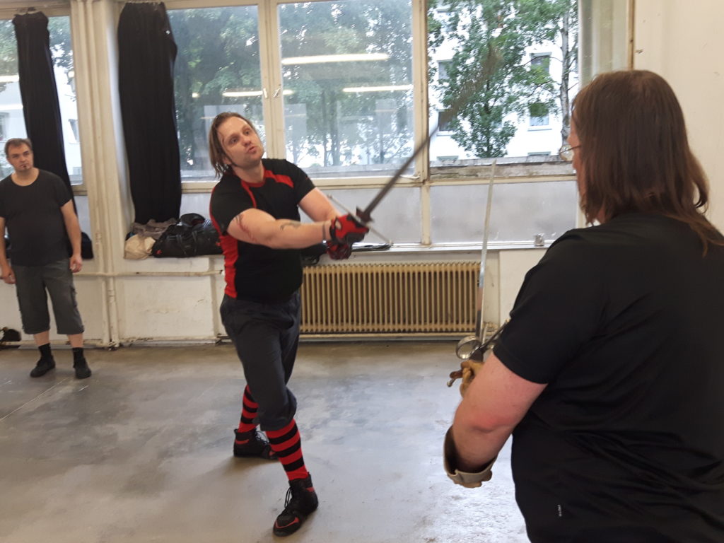 Das Training drehte sich um die Meyer-Interpretation des Krumphau – und war ungeplant eine interessante Erweiterung zu Torsten Schneyers Lichtenauer-Interpretation vergangenen Dienstag. Björn legt außerdem Wert auf Sparring. Und hat sich ein echt forderndes Zirkeltraining ausgedacht – das Video spricht für sich.