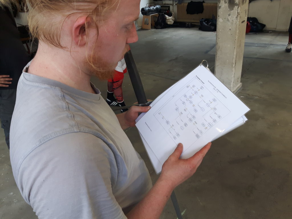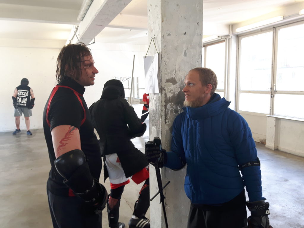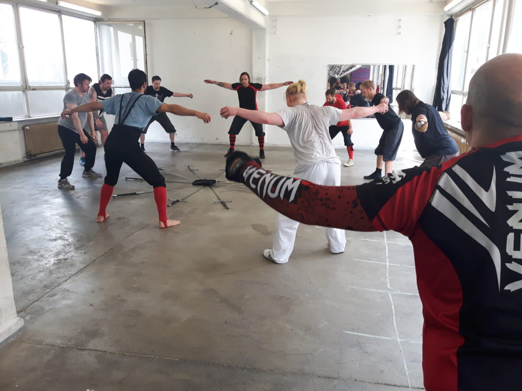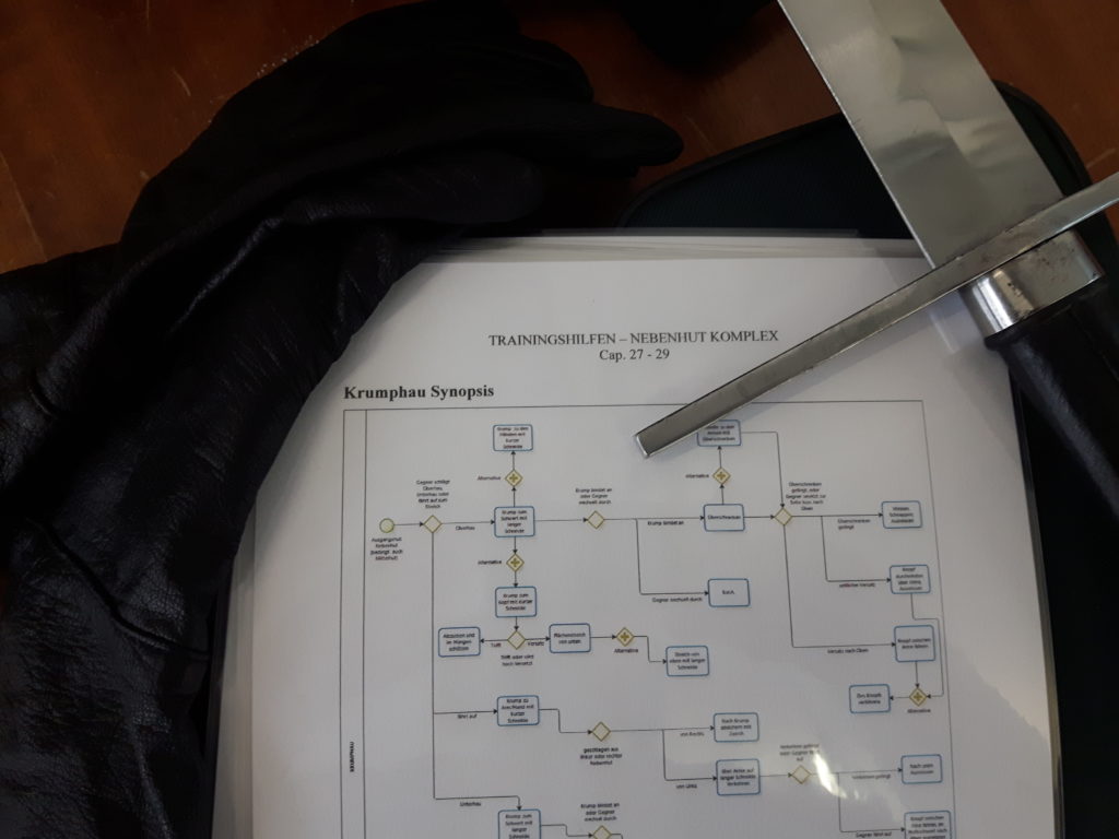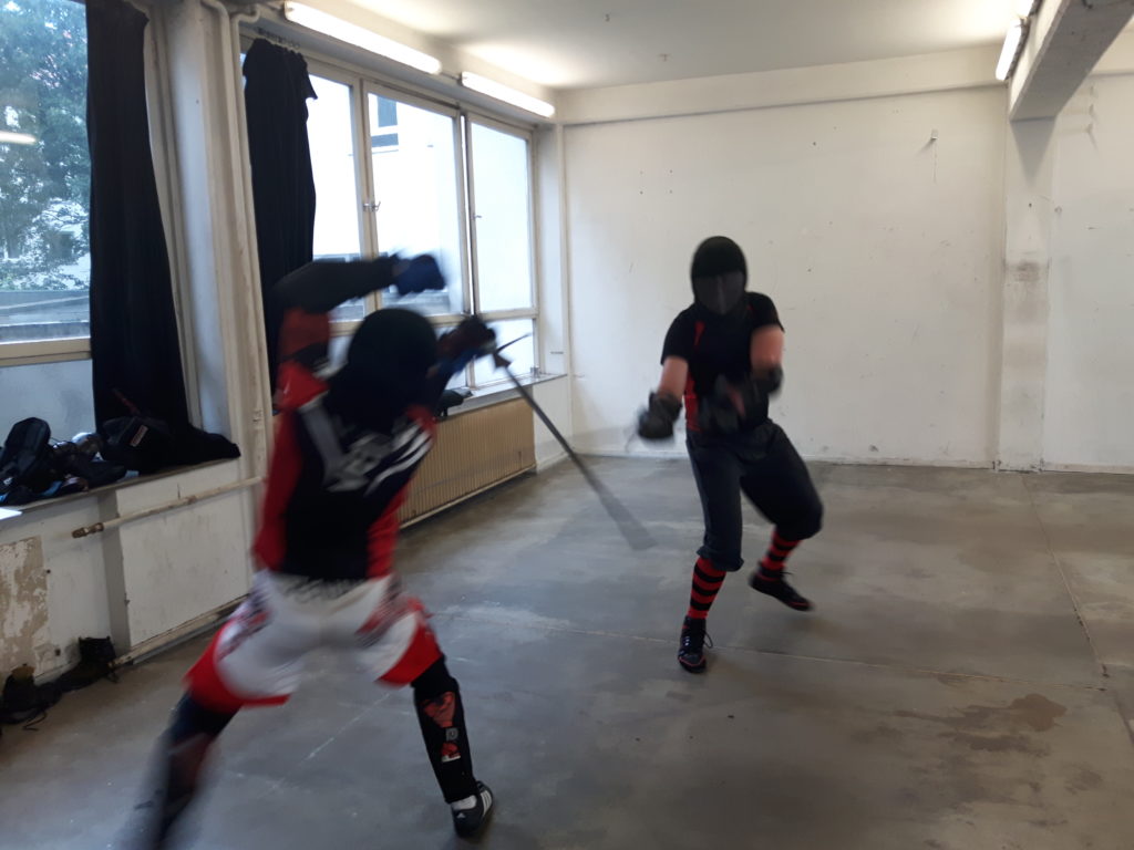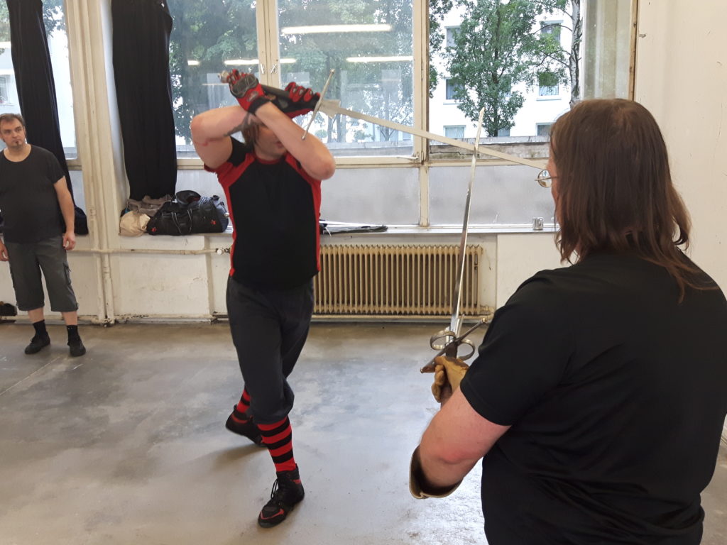Das Training drehte sich um die Meyer-Interpretation des Krumphau – und war ungeplant eine interessante Erweiterung zu Torsten Schneyers Lichtenauer-Interpretation vergangenen Dienstag. Björn legt außerdem Wert auf Sparring. Und hat sich ein echt forderndes Zirkeltraining ausgedacht – das Video spricht für sich.