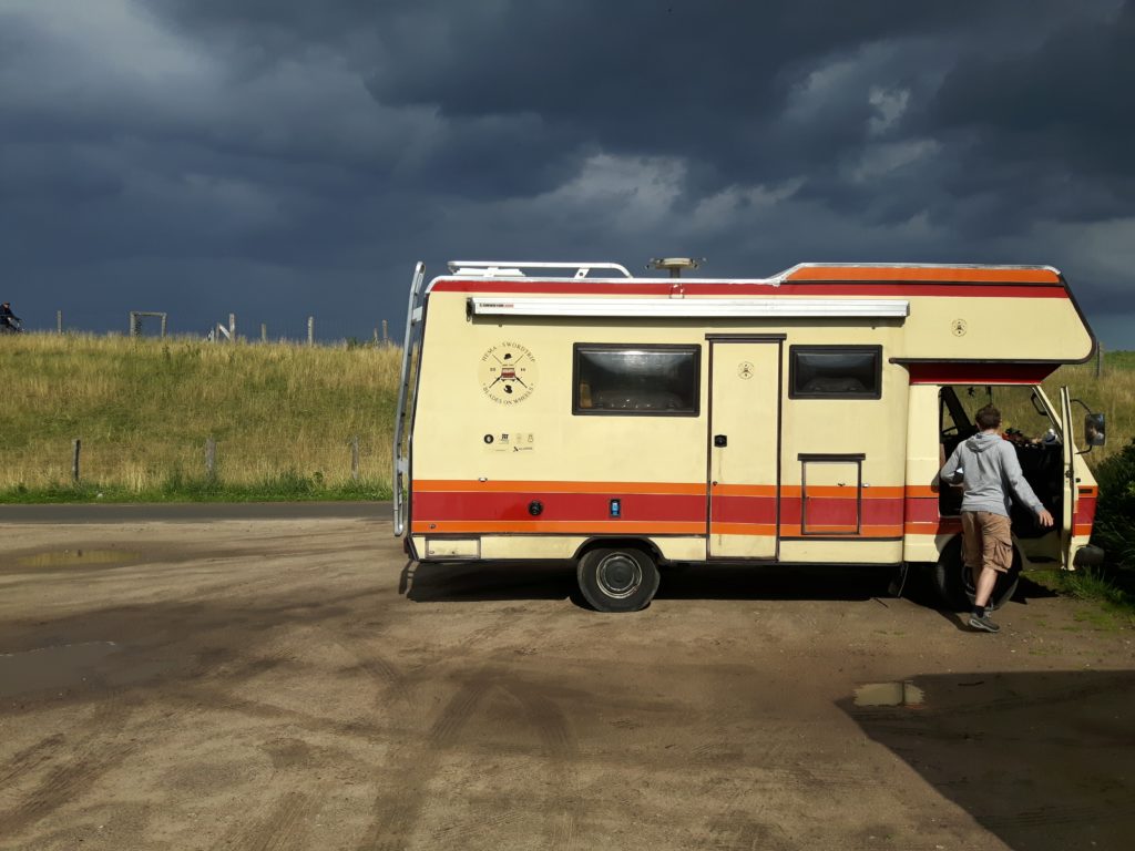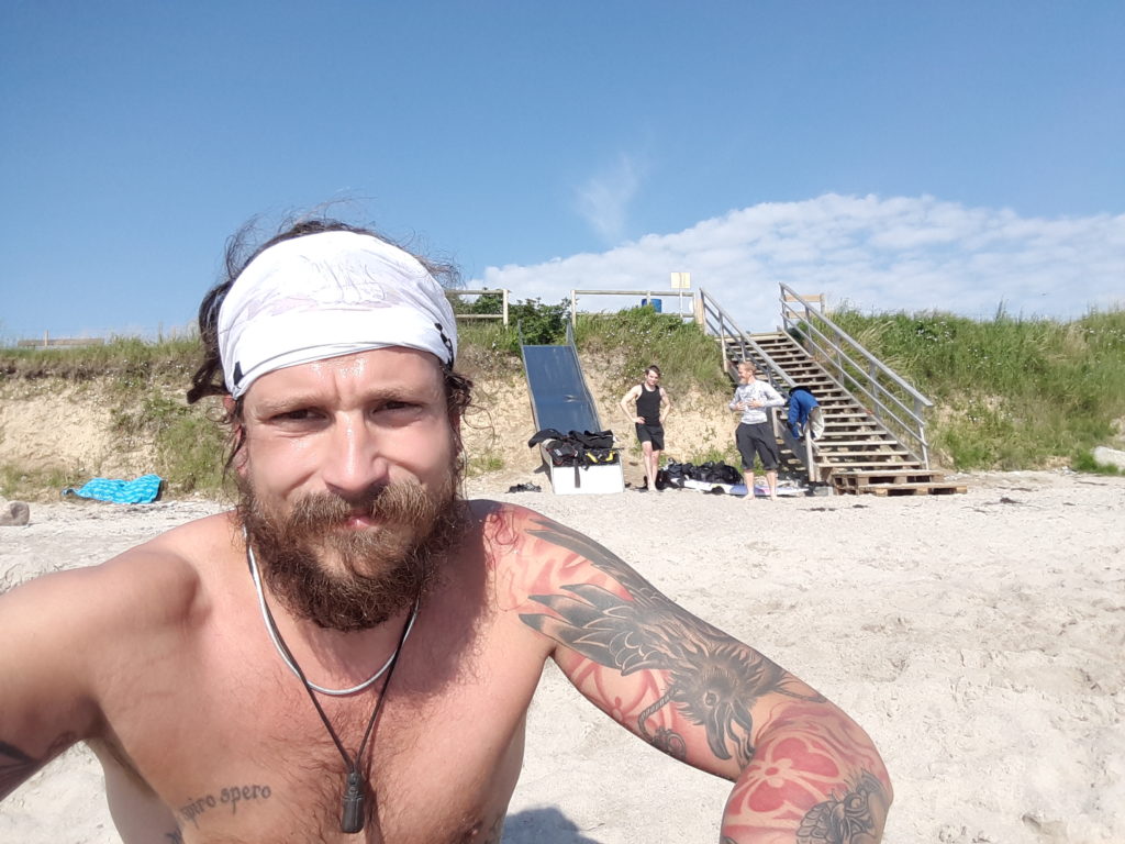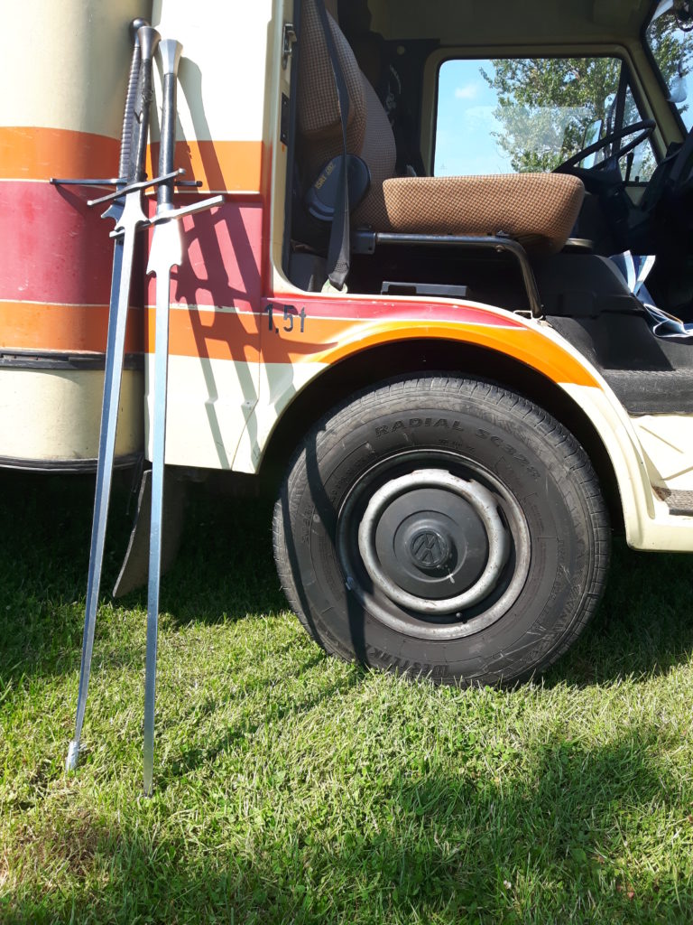 Nach einer Woche nonstop on the Road und einem arbeitsintensiven Montag vormittag in Björns Zuhause in HH dachte sich die Swordtrip-Crew: Ab ans Meer. Fündig wurden wir nach mehreren erfolglosen Anläufen – immerhin wurden jede Menge Flintstone-Klingen für bevorstehende White-Walker-Invasionen angefertigt – an der Ostsee: Paar Kilometer südlich von Fehmarn an der Ostsee in einem Fünf (!!!)-Sterne-Campingplatz namens Rosenfelde. In diesen Inbegriff spießbürgerlichen Urlaubsvergnügens knatterte also unser LT mit den drei Chaoten an Bord. Alle Beteiligten haben es mit Fassung getragen, und der Sleepover fast direkt an der See war derart wohltuend, dass ein morgendliches Sparring am Strand nicht ausbleiben konnte. Frisch gestärkt trat die Crew die Fahrtnach Kassel zu Schwertfechten Nordhessen und der DDHF-Präsidentin Sonja Heer an – wo wir einige Stunden später durch wind und Wetter über die A1 und A7 auch wohlbehalten angekommen sind.