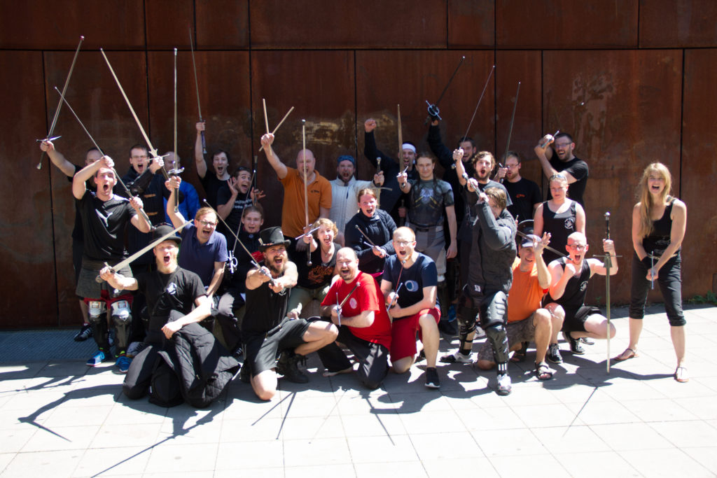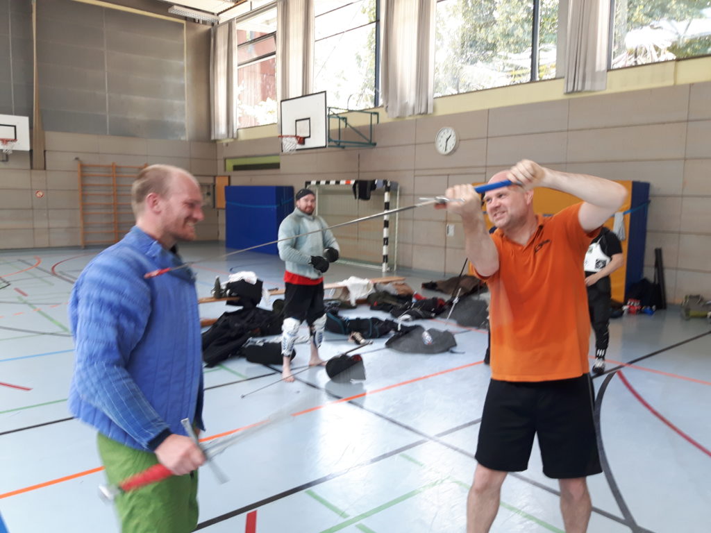 Dank der fetten Orga von Martin Betzenbichler (Ochs München) und Thomas Bögle (Freyfechter Augustini) konnte am Sonntag in München ein geiles Halbzeitevent in München stattfinden: Die Fechtschule Drei mal Zehn in der ALbrechtstraße. Im Titel: Der ZEHNte Juli um ZEHN Uhr für ZEHN Euro. Trotz tropischer Temperaturen ließen es sich an die 30 Fechter nicht nehmen, einander in schweißtreibenden und fairen Zweikämpfen mit unterschiedlichen Wehren zuzusetzen. Erstmalig waren die drei Fechtschulen Ochs, Freyfecher Augustini und mit Alexander Hollinger und Johannes Poddobrjanski und weitern Fechtern auch die Europäische Schwertkunst auf einem gemeinsamen Event vertreten, sogar eine Abordnung von Schwert-und-Bogen Nürnberg machte die Aufwartung. Leute – das schreit nach mehr!!! Sehr schön, dass Bayern, Schwaben und Franken hier fechterisch gerade zusammenrücken!