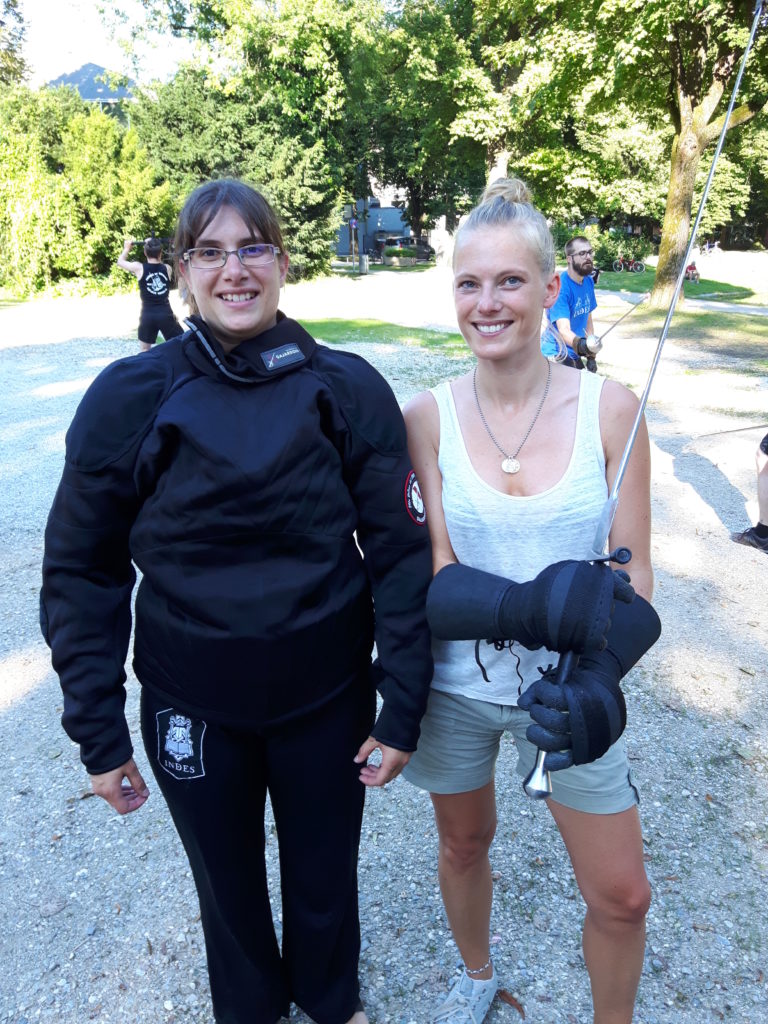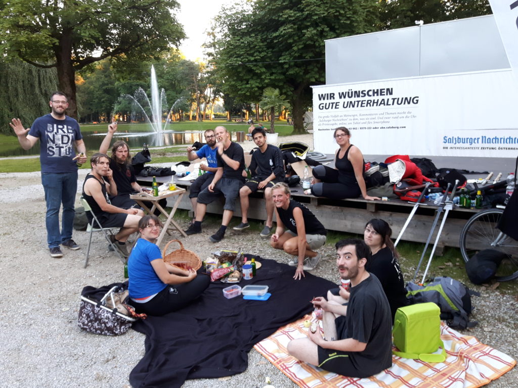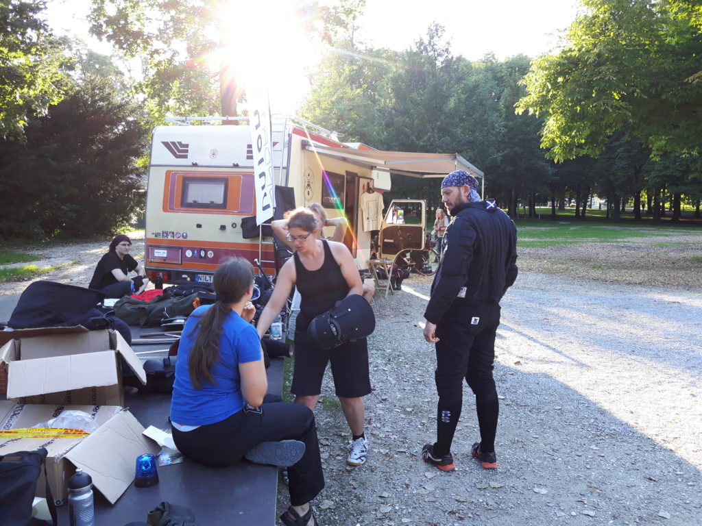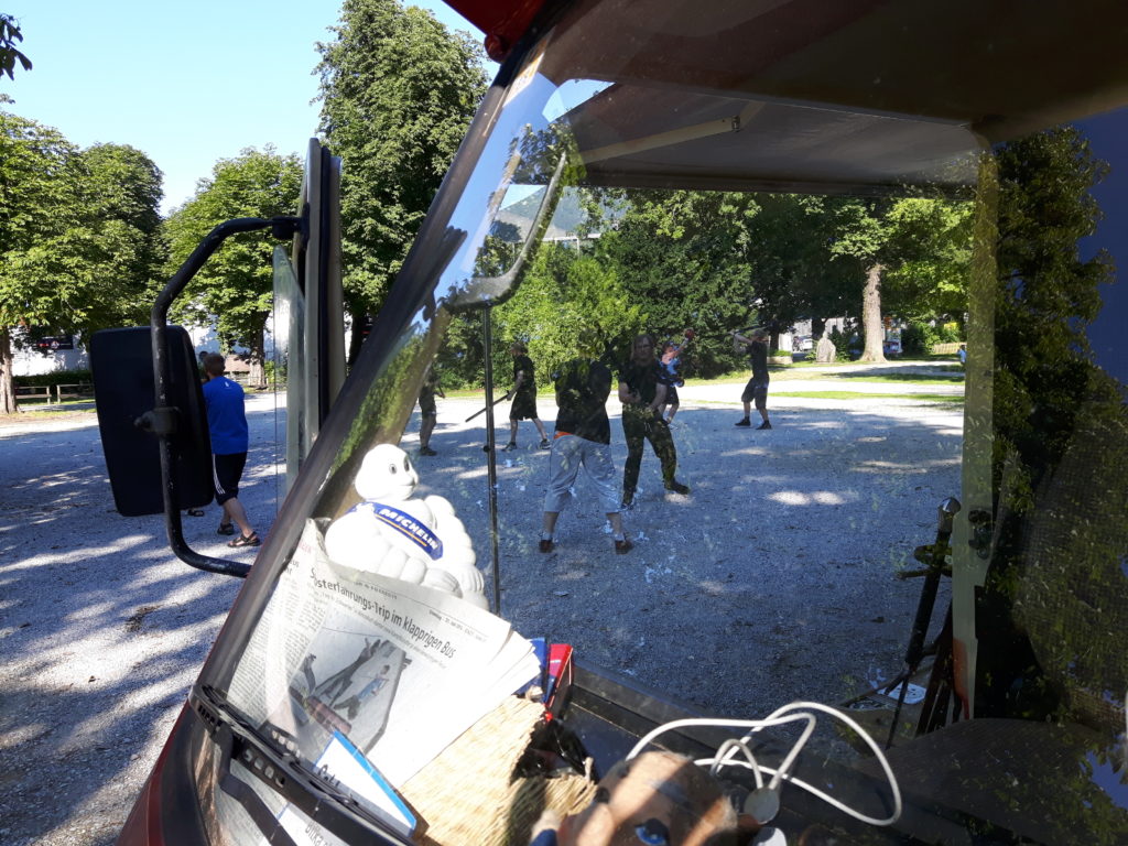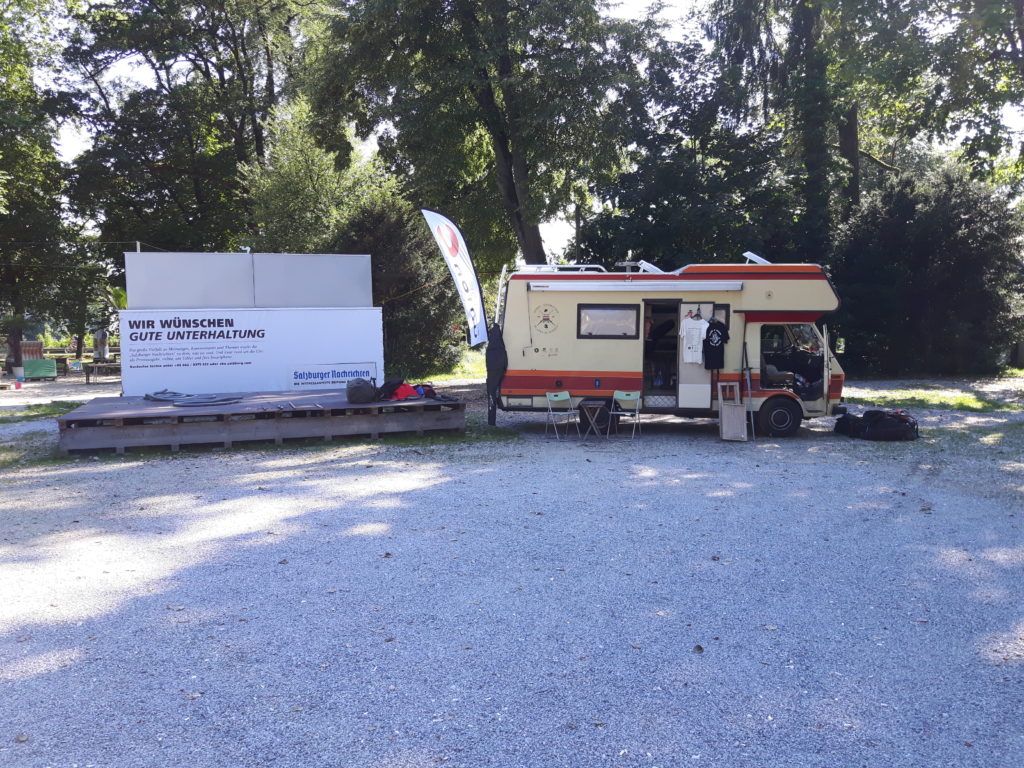 Sommerliche Temperaturen (wohl aus Kärnten mitgebracht) machten unseren Stopp Nummero 18 in Salzburg an den Ufern der Salzach im Volkspark zu einem ganz besonderen Happening. Dem von der Sport Union auf die Beine gestellten Salzbeach Sportfest. Fast schon in Festival-Atmosphäre könnten wir den Bus direkt am Gelände parken und uns auf einer schattigen Fläche ordentlich austoben. Die Indesler aus Salzburg sind in ordentlicher Kopfzahl aufgetaucht und Silvi und Steffen von Schwert-und-Bogen Nürnberg sorgten für die Überraschung des Tages, als sie laut hupend mit Linnels Passat vorgefahren kamen! Danke Euch – Ihr habt uns eine Riesenfreude bereitet!!!