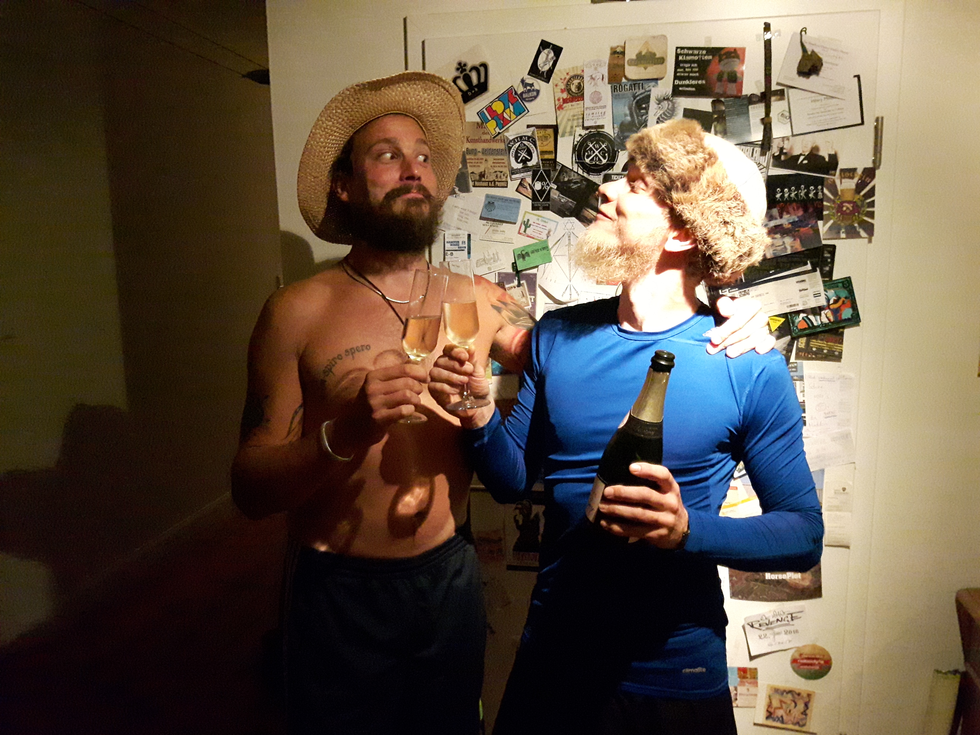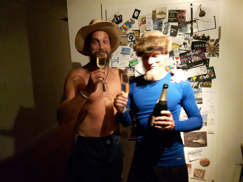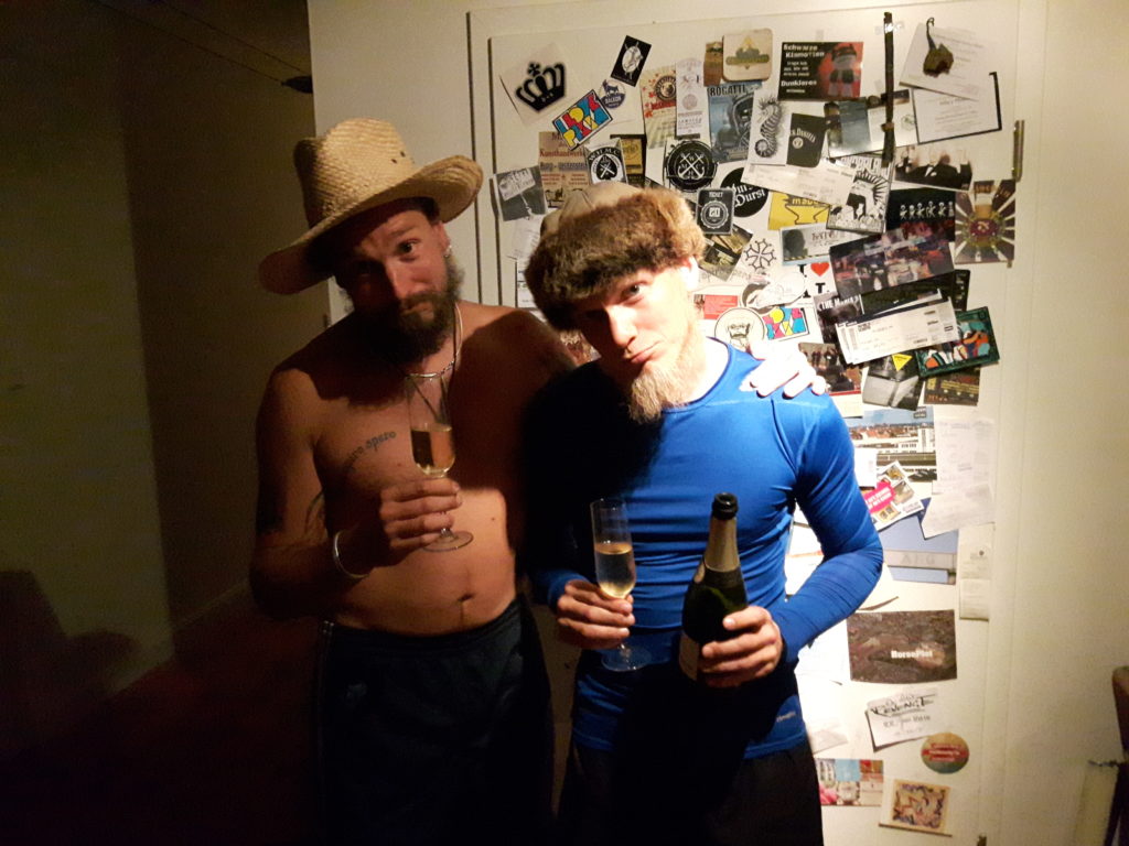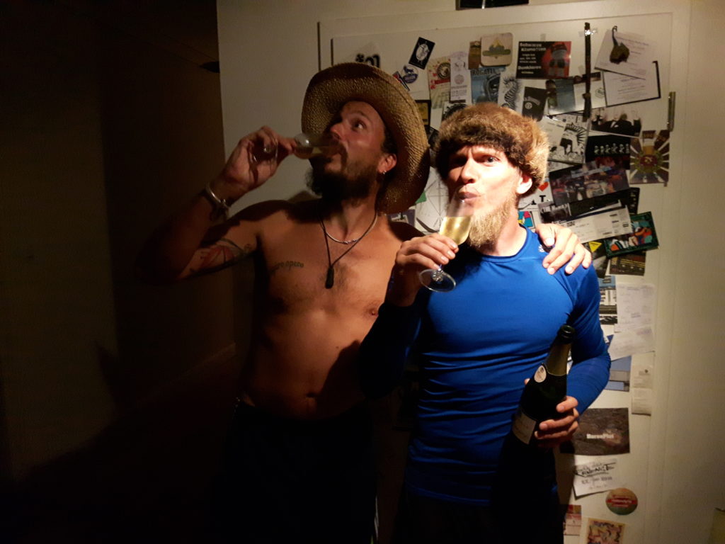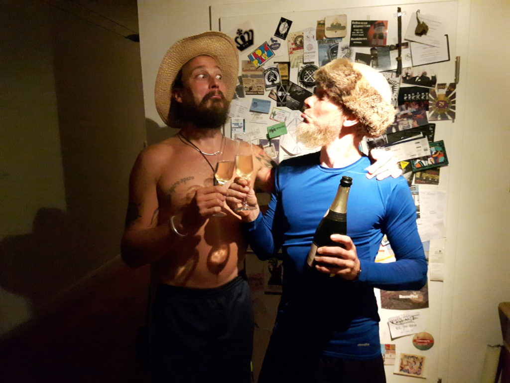 Nach vier Wochen auf dem Schwertweg sind wir wohlbehalten im Mutterschiff-Heimathafen angekommen. Ein merkwüdiges Gefühl wieder festen Boden unter den Füßen zu haben. Die Waschmaschine rotiert, es riecht nicht nach Öl und Diesel und das Bier ist erstaunlich kalt. Zur Feier des Tages stößt die Swordtrip-Crew mit Schampus an – und denkt an alle fantastischen Gastgeber und Weggefährten im Training der letzten Wochen. Ihr alle ward der HAMMER. WE ARE HEMA!!!